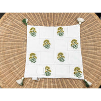 Cortina Embroidered Pillow Cover (20” SQ)-Moss/Sunflower