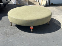 Round Chelsea Ottomon (Turned Leg)-Washed Linen Grove