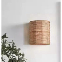 Santa Barbara Rattan Drum Sconce-Natural Brown