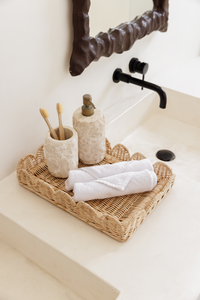 Introducing our Rectangular Scallop Trays, thoughtfully crafted in two sizes to suit your needs. These trays feature a handwoven wicker design and scalloped edges, making them the perfect addition to your home decor.