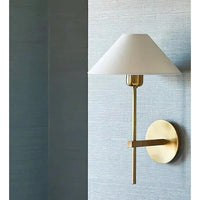 Visual Comfort Hackney Single Sconce (White Linen Shade)-Antique Brass